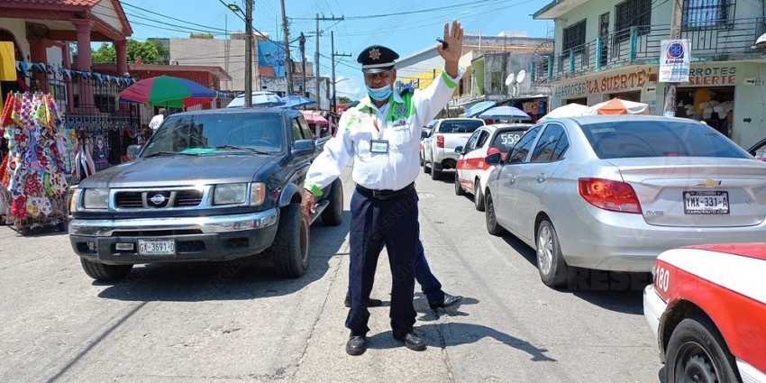 Este lunes 29 de agosto, cuando se reactivaron las actividades escolares y aumentó el flujo vehicular, el oficial Carlos Caballero se apostó en el crucero de la avenida 20 de Noviembre y Plan de Ayala, entre el mercado ‘Miguel Hidalgo’ y la iglesia católica, para agilizar y controlar la vialidad.