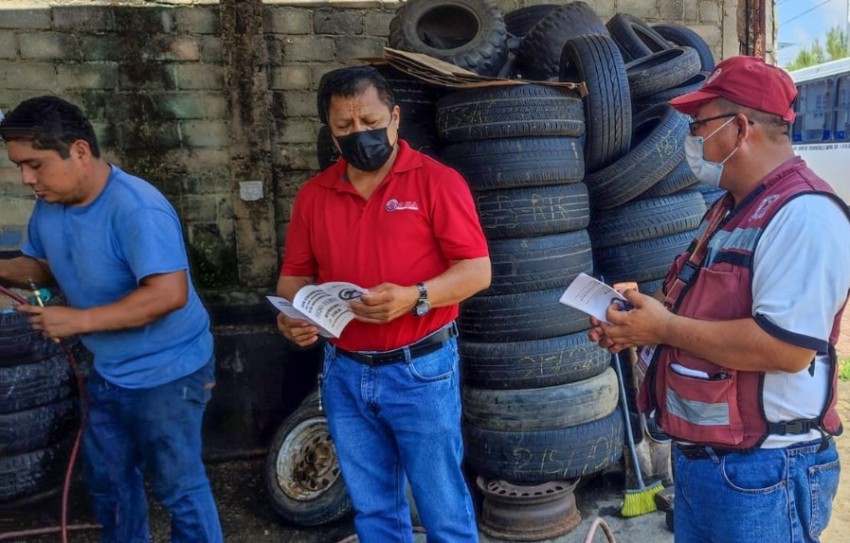 Durante agosto, más de 40 vulcanizadoras fueron visitadas por personal de la Dirección de Salud Pública Municipal a cargo del doctor Javier Reyes Muñoz, para hacer promoción a la eliminación masiva de criaderos contra el mosquito transmisor del dengue.