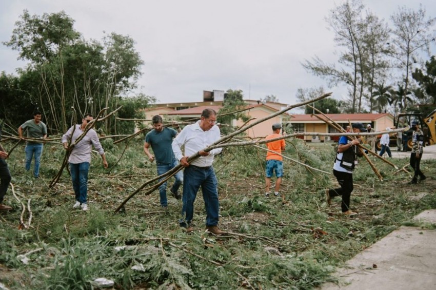 En este plantel también iniciaron trabajos de demolición, porque el ala de un edificio escolar representaba un peligro. También se retiró un enorme árbol que cayó sobre la barda del plantel y amenazaba una vivienda.