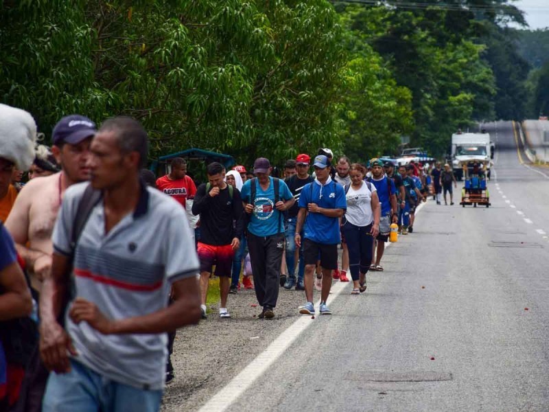Salteando los retenes policiacos sobre el tramo carretero federal de Tapachula al municipio de Arriaga Chiapas, grupos de migrantes caminan hasta Tapanatepec, Oaxaca para conseguir la visa humanitaria y llegar así vía Piedras Negras, Coahuila a los Estados Unidos.