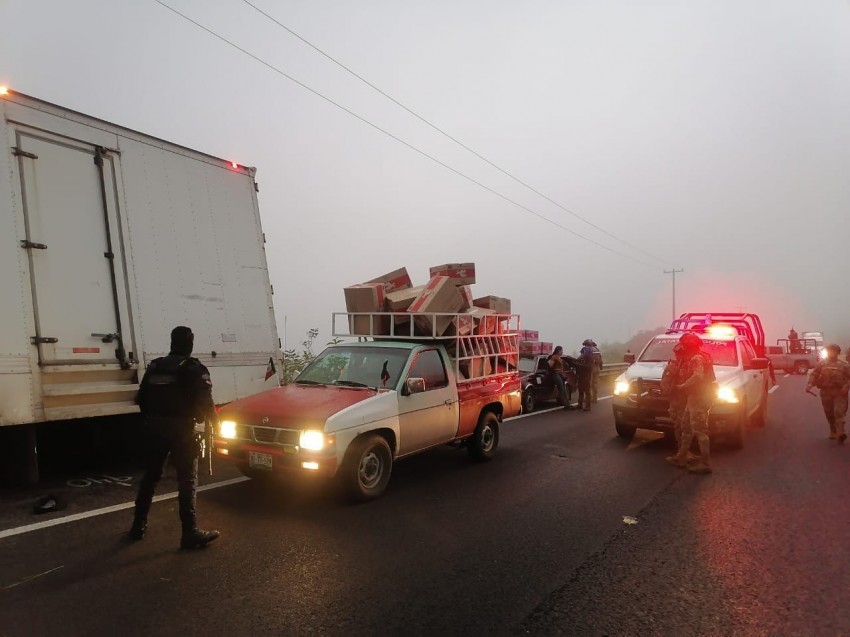 Durante patrullajes preventivos sobre la autopista 150D Orizaba-Puebla, que comprende las localidades en los municipios de Atzizintla, San José Cuyachapan y Esperanza, Puebla, así como Maltrata, Veracruz, fueron detenidos Fabiola “N”, Lorenzo “N” y Lázaro “N”, cuando sustraían mercancía de un tractocamión con caja seca, placas 282AL2.