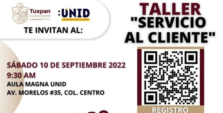 Con el propósito de continuar impulsando la educación empresarial en el municipio, la Dirección de Desarrollo Económico de Tuxpan en coordinación con la Universidad Interamericana para el Desarrollo (UNID) realizarán el Taller de “Servicio al Cliente” el próximo 10 de septiembre.