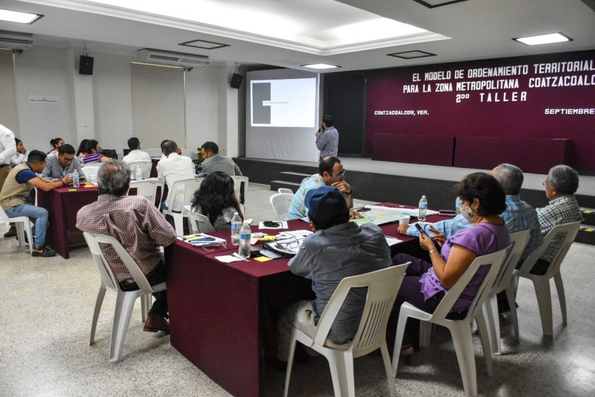 Autoridades de los tres órdenes de gobierno, académicos, empresarios y asociaciones civiles, participaron en el Segundo Taller de Inteligencia Metropolitana como parte de la integración del Modelo de Ordenamiento Territorial para la Zona Metropolitana de Coatzacoalcos.