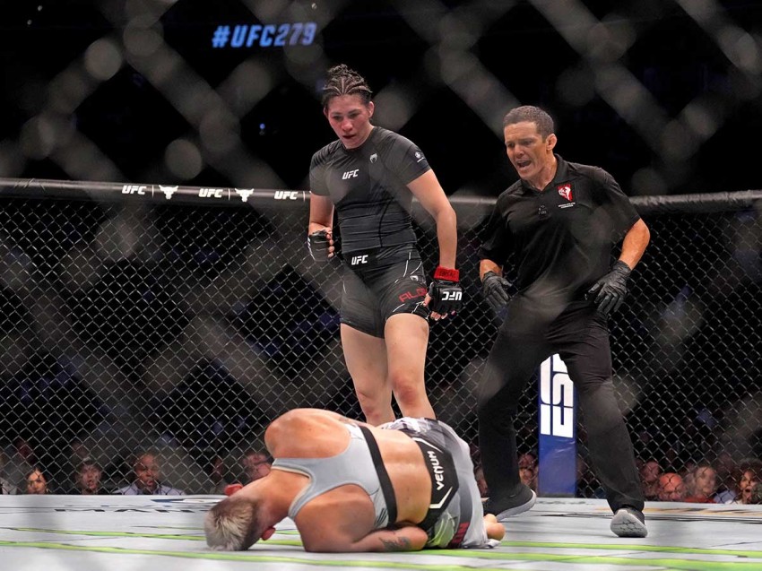 Al puro estilo de Alfredo Adame, con una patada de bicicleta, así fue como la peleadora mexicana Irene Aldana logró imponerse ante la estadunidense Macy Chiasson en el evento UFC 279, logrando un poderoso nocaut técnico tras conectar la zona hepática de su rival.