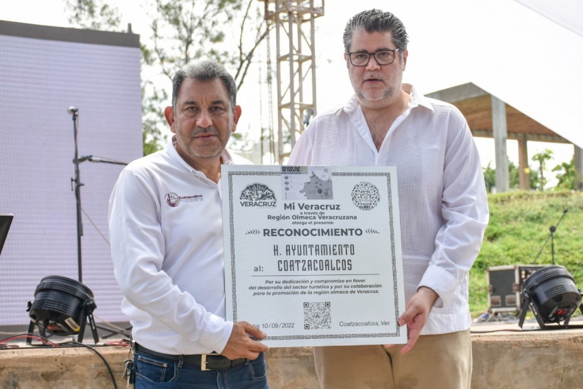 A nombre del Ayuntamiento de Coatzacoalcos, el Presidente Municipal, Amado Cruz Malpica, recibió un reconocimiento de “Mi Veracruz” a través de “Región Olmeca Veracruzana”, por la dedicación y compromiso en favor del desarrollo del sector turístico y por la colaboración para la promoción de esta zona del sur de Veracruz.