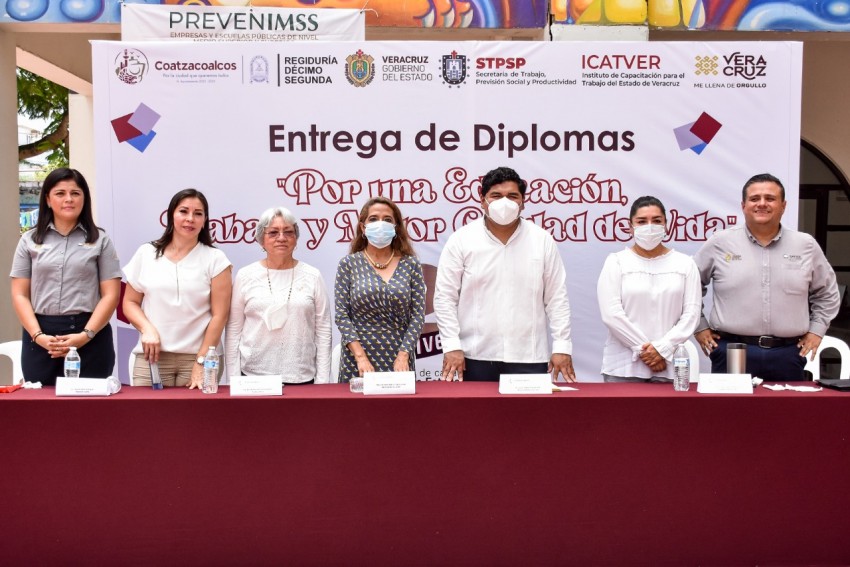 El Gobierno Municipal de Coatzacoalcos, que preside Amado Jesús Cruz Malpica, a través de la Regiduría Décimo Segunda que representa Octavio Paz Castilla, y el Instituto de Capacitación para el Trabajo (Icatver), entregaron 200 diplomas a ciudadanos porteños quienes culminaron los cursos de Gastronomía, Cuidado Personal, Inglés, Francés y Corte y Confección.