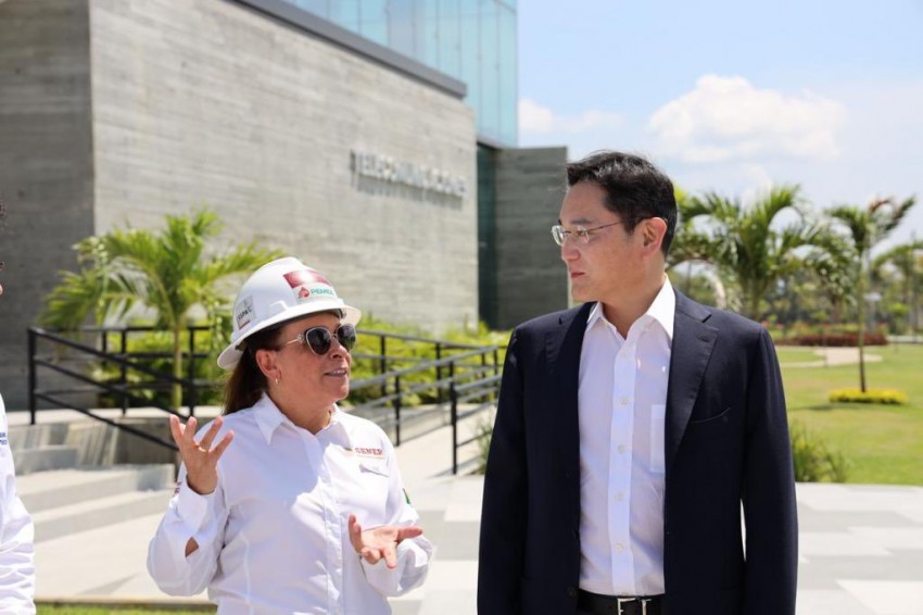 La secretaria de Energía, Rocío Nahle García, recibió este sábado 10 de septiembre al vicepresidente de Grupo Samsung, Lee Jae Yong, en la Refinería Olmeca, en Dos Bocas, Tabasco, con quien realizó un recorrido de supervisión en la integración de las plantas que forman parte del contrato que la empresa tiene en este gran proyecto.