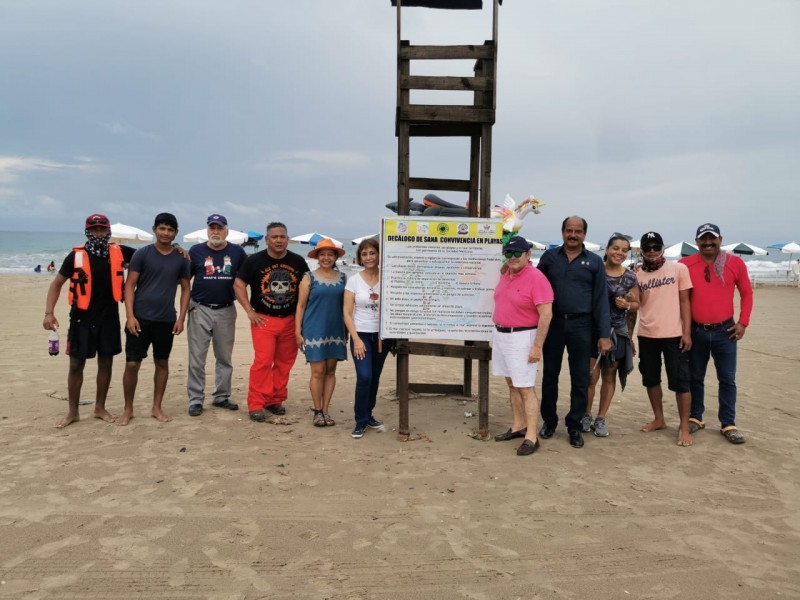 Debido a las condiciones del tiempo el inicio de las actividades se retrasó pero se efectuaron conforme la logística planeada, colocándose 10 letreros con el decálogo de Sana Convivencia en playas a lo largo del tramo que comprende Playa Azul hacia Barra Norte a la altura del faro.
