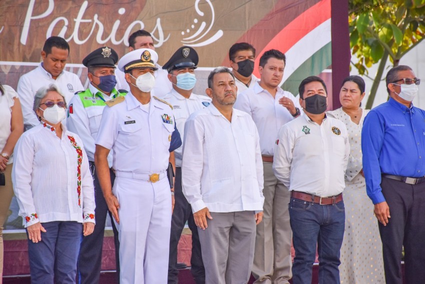 Posteriormente, junto a Regidores, autoridades Municipales, Militares, Navales, Educativas, Transporte Público, Policía Vial, Policía Municipal, CLAM y Cruz Roja, rindió los honores a nuestro Lábaro Patrio y guardó un minuto de silencio por las víctimas de los terremotos de 1985 y de 2017.