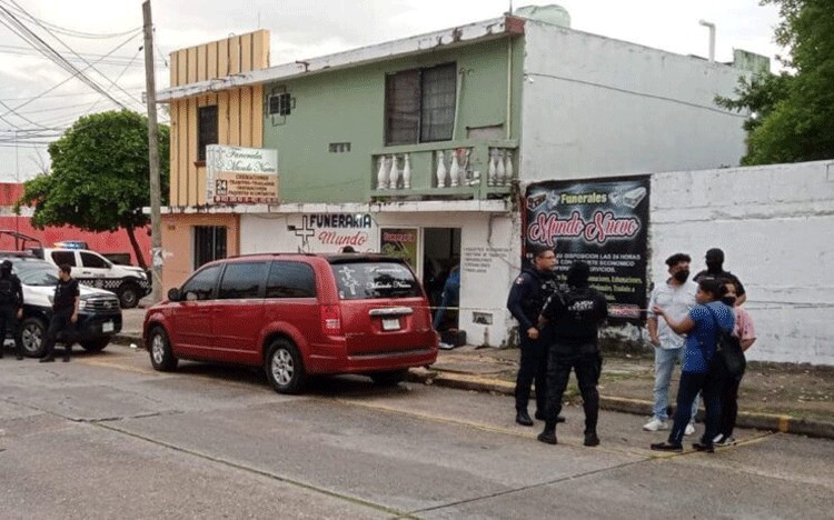 El hecho ocurrió aproximadamente a las siete de la mañana en la funeraria “Mundo Nuevo” ubicada en la esquina de las calles Román Marín y Melchor Ocampo de la colonia Manuel Ávila Camacho, cuando sujetos armados a bordo de un vehículo dispararon al menos diez veces en contra de dos hombres y una mujer que estaban en el estacionamiento del lugar.