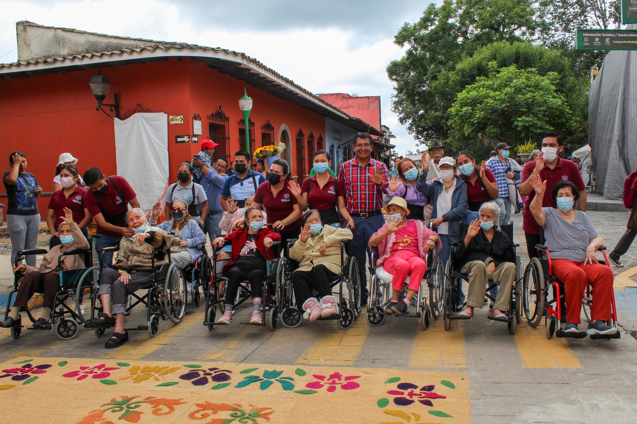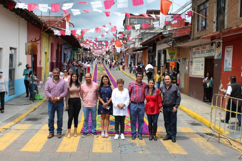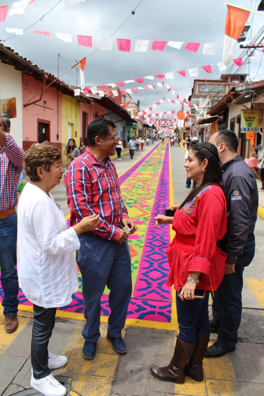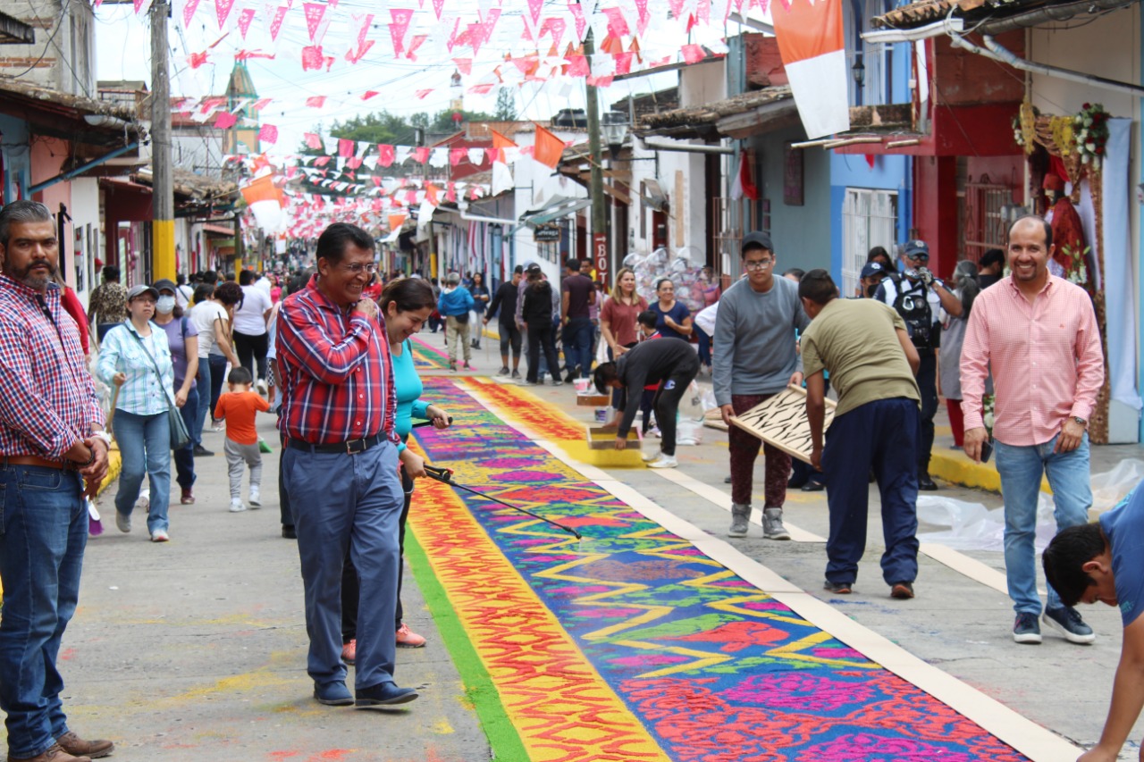 El alcalde de Coatepec, Raymundo Andrade Rivera, acompañado de ediles municipales realizaron un recorrido alrededor de las alfombras de aserrín realizadas en honor a San Jerónimo.