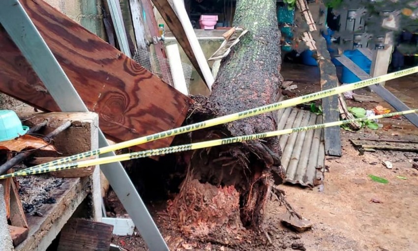 Por la tarde de este mismo día, con el apoyo de la Subdirección de Ornatos, Parques y Jardines encabezada por Norberto Seba Acosta, retiraron un árbol que cayó sobre una casa de lámina habilitada como cocina que se encontraba sola, por lo que no se reportan personas lesionadas.