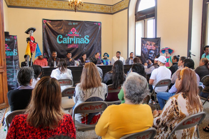 En rueda de prensa, el alcalde de Coatepec Raymundo Andrade Rivera acompañado de ediles y organizadores del evento, dieron a conocer el programa de actividades del Festival Catrinas 2022.