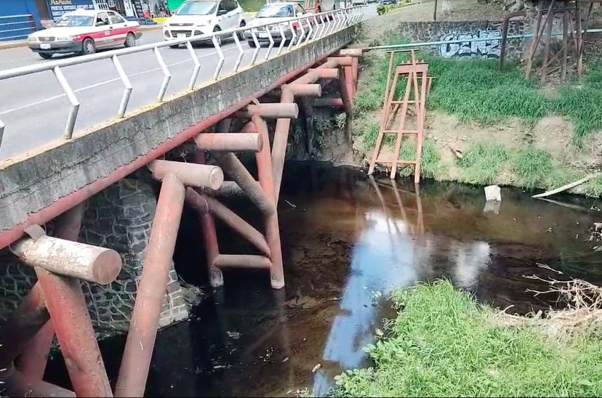 Hasta el momento no se sabe el punto de la fuga, lo que se logra apreciar entre las aguas negras es una mancha espesa que se va extendido por el cauce del arroyo.