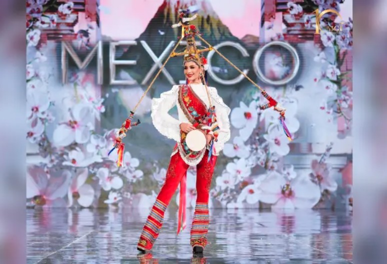 El traje diseñado por Esteban Ortiz se presentó en Jakarta, Indonesia, como parte de la categoría “traje típico”, del concurso Miss Grand International 2022, en el que escogieron a los voladores por lo representativos que son del país.
