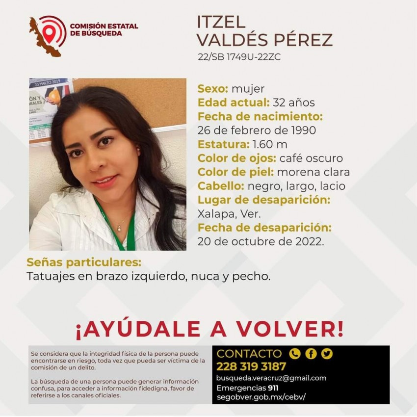 La enfermera Susana Ronzón García, compañera de Itzel Valdés Pérez, en entrevista dijo que piden el apoyo para localizarla, la joven de 33 años salió de la clínica 11 hacia su casa en la colonia Revolución. Dijo que ya se interpuso la denuncia en la fiscalía, “se supone que ya están los resultados de los videos pero aún no los tenemos, ya son 24 horas., su esposo, su familia nosotros sus compañeros, sus amigas todos hemos estado tratando de localizarla y no sabemos nada de ella.