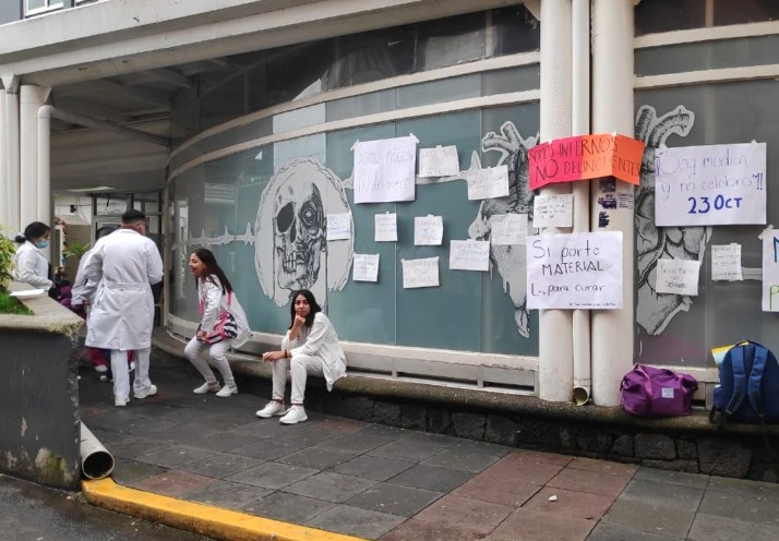 Médicos internos de pregrado del Hospital Regional "Dr. Luis F. Nachón" y de la Clínica 11 del IMSS de la ciudad de Xalapa protestaron a la afueras de sus centros de trabajo y anunciaron paro de brazos caídos.