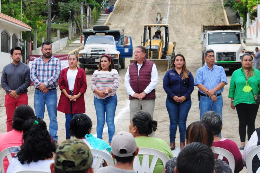 El alcalde José Manuel Pozos Castro; la síndica única Mtra. Beatriz Piña Vergara; las regidoras Lucero Reséndis Ambrocio, comisionada en Obras Públicas; Maryanela Monroy Flores, Anahí Aguilar López, y el regidor Axel Bernal Herrera, acompañados por vecinos de la calle Luis Echeverría, participaron en el arranque de obra.