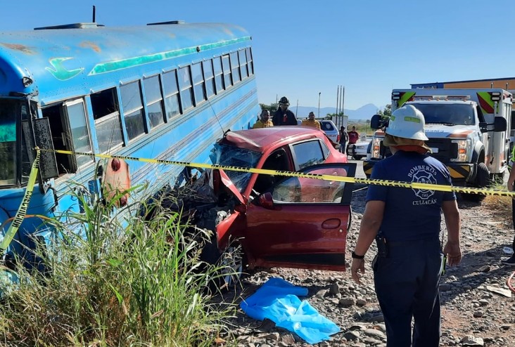Las autoridades realizan los peritajes sobre el accidente de una familia sobre la Maxi pista Mazatlán-Culiacán, donde falleció la señora Julia Karina “N” y su esposo y dos hijos menores de edad resultaron heridos, al impactarse contra un camión del transporte de jornaleros agrícolas que se les atravesó.