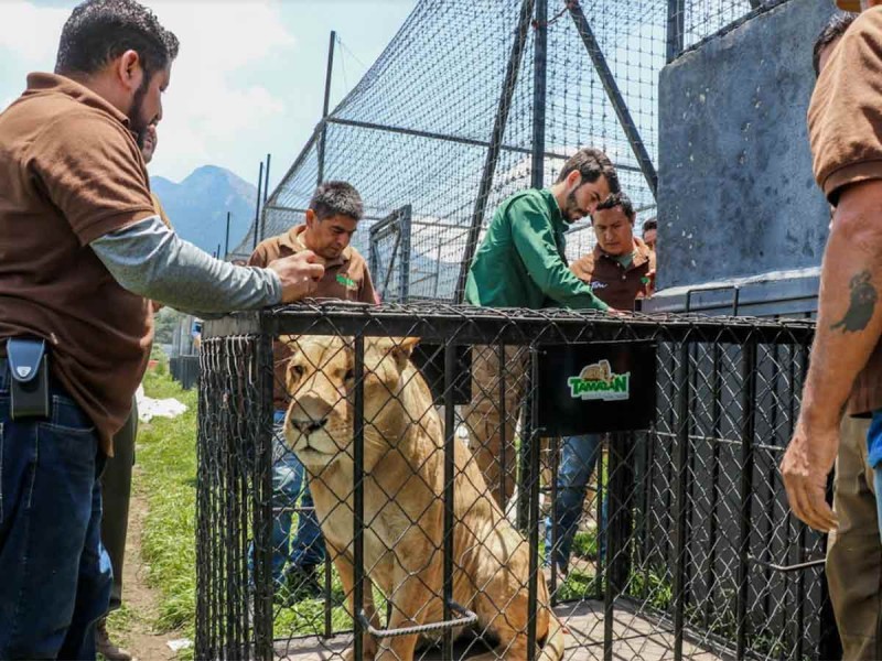 Una de las últimas reubicaciones fue la de un león macho enviado al Zoofari ubicado en la comunidad de Teacalco, en el estado de Morelos.