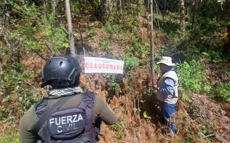 Las autoridades clausuraron un predio forestal por cambio de uso de suelo que afectaba un total de 6.58 metros cúbicos de árboles en rollo.