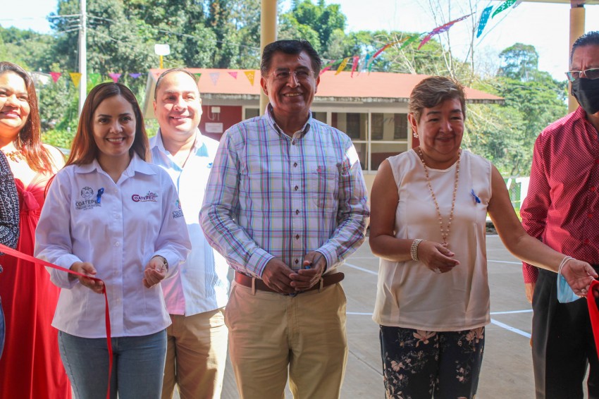 Cómo parte del Plan Anual de Obras 2022 se llevó a cabo la inauguración de la cancha en la escuela primaria Adolfo Ruiz Cortines de la localidad Cuahutémoc.