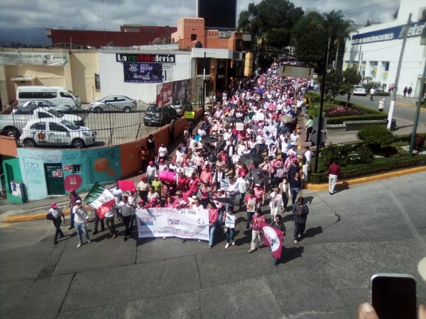 Como se esperaba xalapeños salieron a las calles a marchar y manifestarse en la llamada “Marcha por la Democracia” en defensa del Instituto Nacional Electoral (INE), para que no desaparezca, como lo pretende el presidente de la República en su iniciativa de Reforma Electoral.