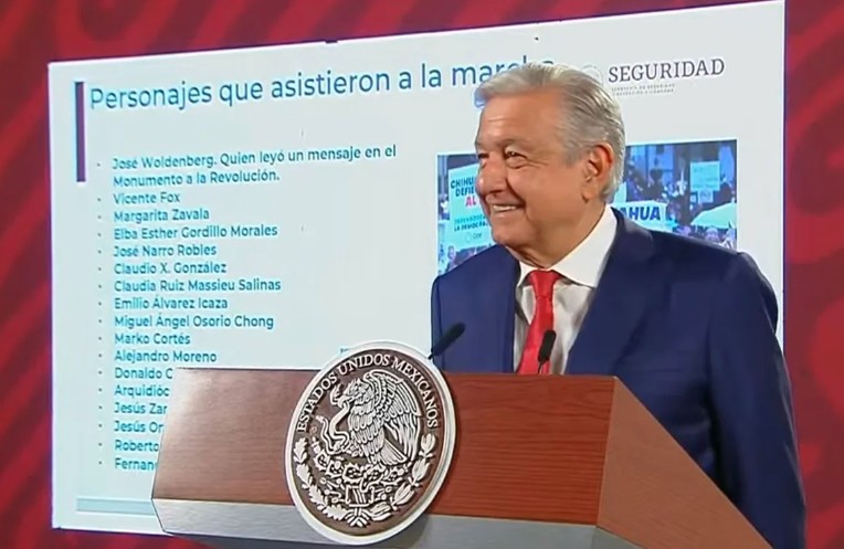 Al hablar de la marcha en defensa del INE, que se realizó este domingo 13 de noviembre, López Obrador exhibió una lista con alrededor de 36 nombres de políticos, actores y organizaciones religiosas.