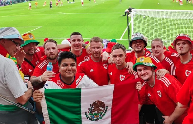 Un aficionado de los Tiburones Rojos del Veracruz se coló entre los seguidores de Gales, cuando este equipo debutó en el Mundial de Qatar 2022, en un partido que culminó 1-1 con Estados Unidos.