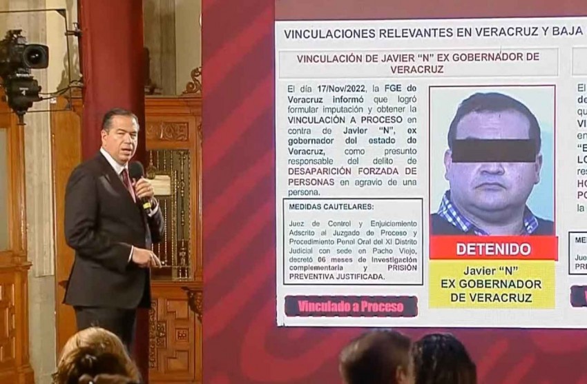 El subsecretario de Seguridad Pública del gobierno federal, Ricardo Mejía Berdeja, destacó este jueves en la conferencia “mañanera” desde Palacio Nacional, la vinculación a proceso del ex gobernador Javier Duarte de Ochoa por el presunto delito de desaparición forzada.
