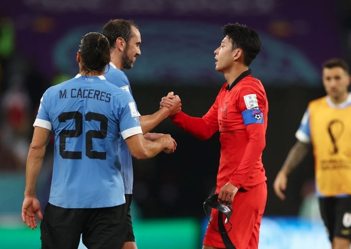 Uruguay respondió a los 42 con un remate de cabeza del veterano capitán Diego Godín que dio en uno de los postes del arco coreano, luego de un tiro de esquina de Federico Valverde desde el sector derecho.
