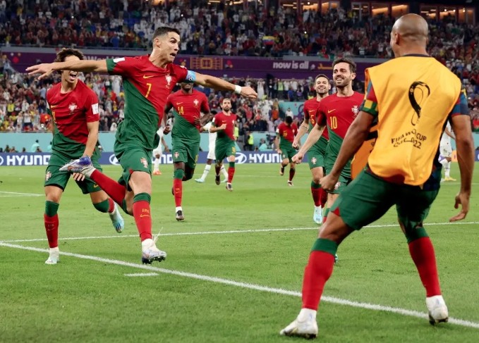 Todo el equipo de Portugal corrió por la línea de banda para abrazarse con Ronaldo, quien superó a Pelé, Uwe Seeler y Miroslav Klose para ser el único futbolista en marcar en cinco Copas Mundiales distintas.