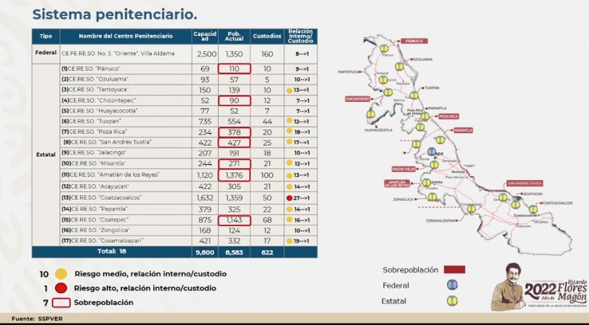 Los centros penitenciarios de Veracruz sufren de sobrepoblación, por lo que el Presidente López Obrador dio instrucciones a la secretaria de Seguridad y Protección Ciudadana (SSPC), Rosa Rodríguez y al Gobernador de Veracruz. Cuitláhuac García, para ponerse en marcha en la resolución del problema.