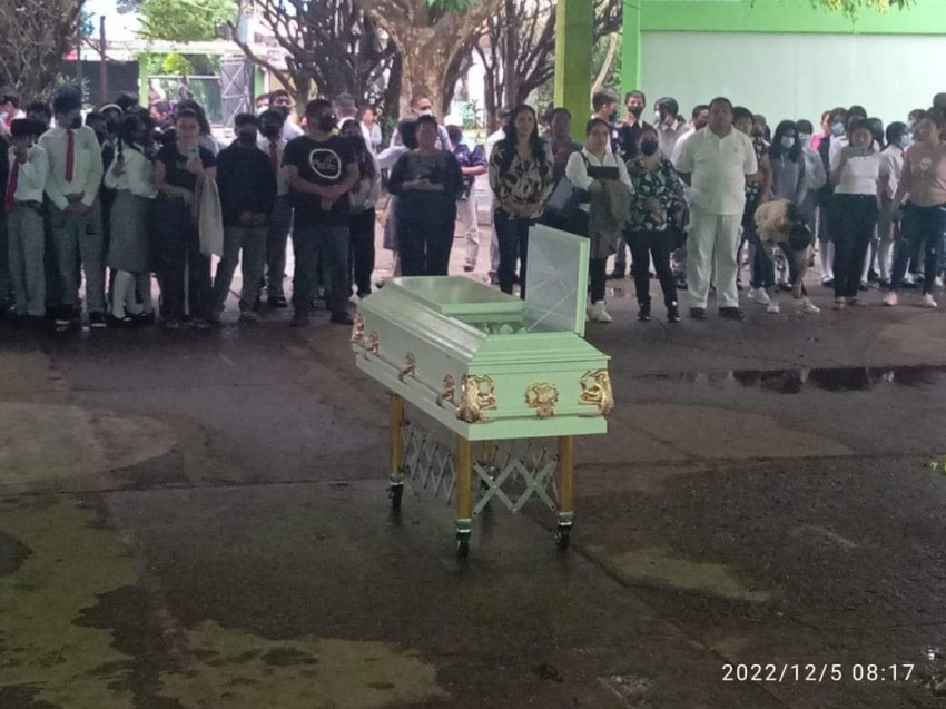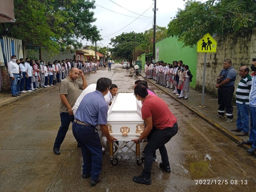 Alumnos, profesores y familiares despidieron a Yesenia Lilia Martínez Ovando estudiante de la Escuela Secundaria General No. 5 asesinada este fin de semana en la colonia Santa Isabel II de Coatzacoalcos.
