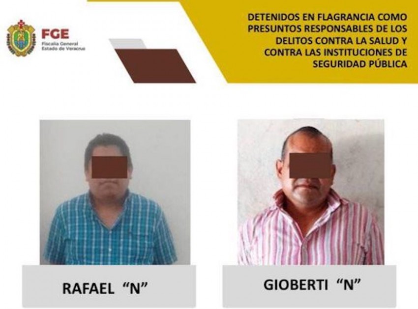 La Fiscalía General del Estado informa que ayer martes 6 del presente mes y año, elementos de la Secretaría de Seguridad Pública, adscritos a la Dirección General de la Fuerza Civil, detuvieron en flagrancia a Rafael “N”, y Gioberti “N”, quienes fueron puestos a disposición de un Fiscal adscrito a la Unidad Integral de Procuración de Justicia en Coatzacoalcos, como presuntos responsables de los delitos contra la salud y contra las instituciones de seguridad pública.