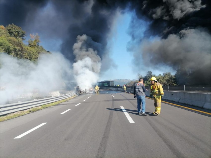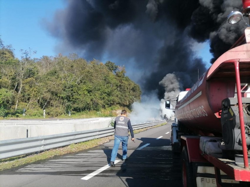 Un fuerte incendio se registró en la autopista de cobro Xalapa-Perote, a la altura del puente de Tlacolulan, donde se ve involucrada una pipa cargada de asfalto y otro vehículo particular.