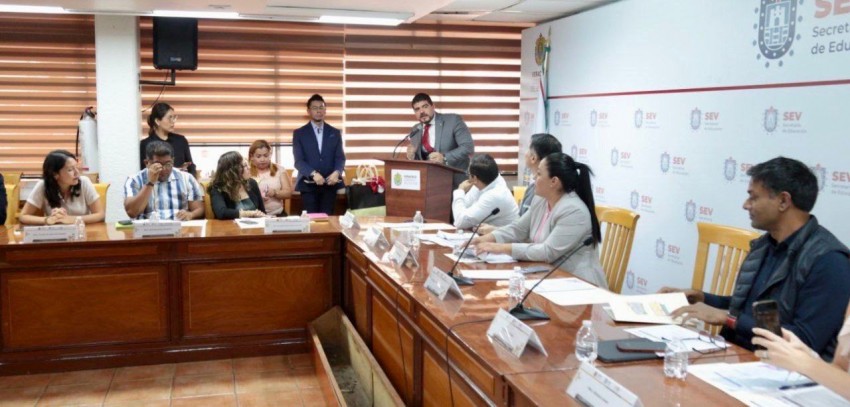 Ante la presencia del vicepresidente de Operaciones Internacionales de Khan Academy, Sandeep Bapna; el director general para Latinoamérica, Sidnei Shibata, y la gerente de Mercado e intérprete, Ghislaine Liendo; la subsecretaria de Educación Básica en Veracruz, Maritza Ramírez Aguilar; así como de las y los directores y coordinadores de distintas áreas de la Secretaría, el titular de la dependencia educativa resaltó la importancia de que las y los maestros cuenten con una capacitación constante que no vulnere sus derechos como trabajadores; por ello, enfatizó la firma de esta alianza que llevará a que Veracruz siga contando con las y los mejores docentes, así como estudiantes; asimismo, reiteró su compromiso de continuar trabajando en la transformación de la educación.