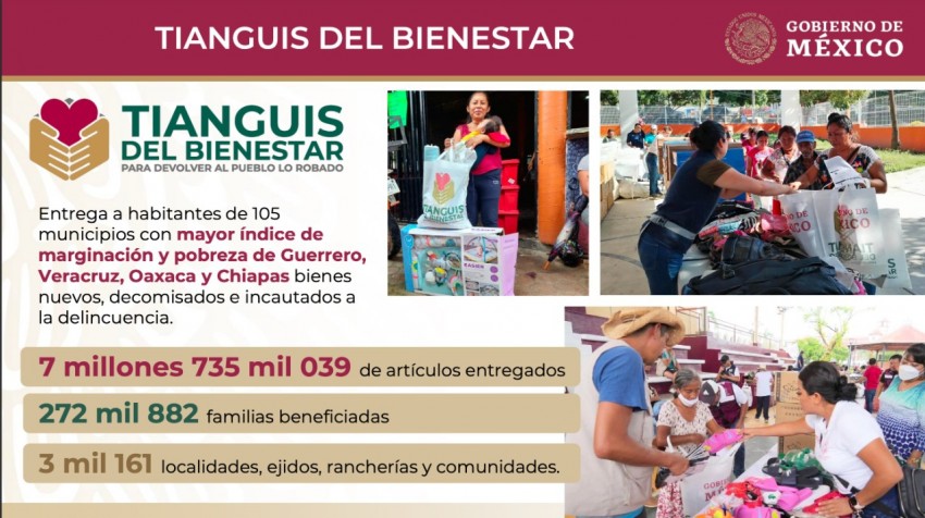 “Se trata de artículos nuevos, de primera necesidad que han beneficiado a más de 272 mil familias de 105 municipios con mayores niveles de pobreza de Guerrero, Veracruz, Chiapas y Oaxaca”.