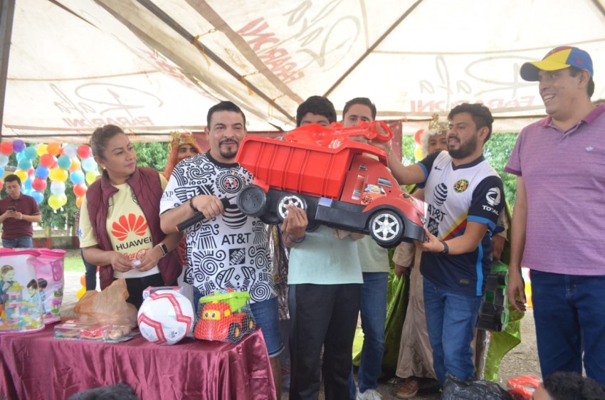 Gómez Cazarín felicitó a Luis Córdoba Ferman por preocuparse por el bienestar de la niñez de San Andrés Tuxtla y, junto con su equipo de trabajo, organizar un gran festejo para los infantes de esta comunidad.