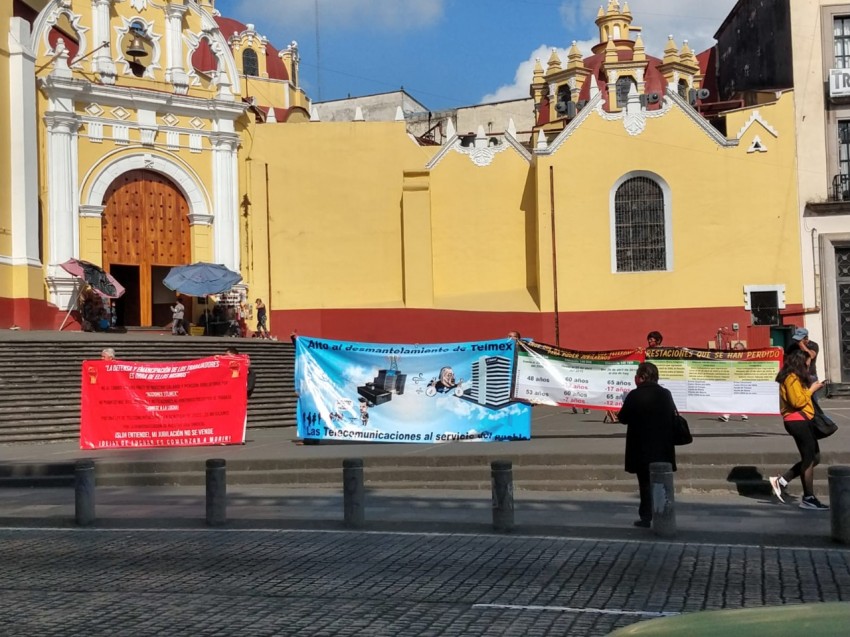 Integrantes de la sección 17 del Sindicato de Telefonistas de la República Mexicana, se manifestaron en plaza Lerdo de Tejada de la capital del Estado, en defensa de su contrato colectivo de trabajo.