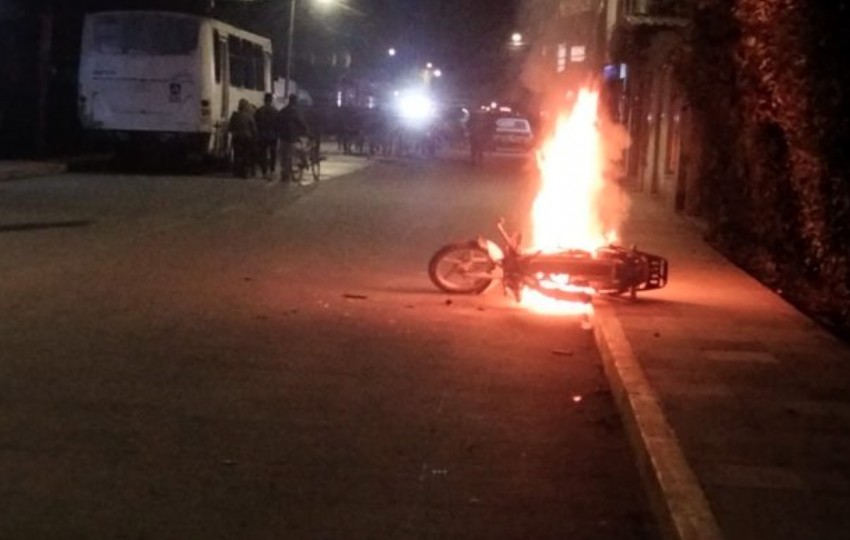 La noche del martes se registró un enfrentamiento entre hombres armados con elementos de Seguridad Pública, los civiles dispararon en contra de la comandancia de Policía que se encuentra en la planta baja del palacio municipal al mismo tiempo los rijosos se robaron una moto patrulla la cual fue quemada sobre la avenida principal.