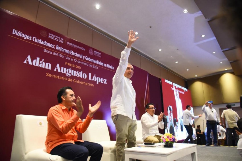 Al arrancar en el estado de Veracruz la cruzada nacional “Diálogos ciudadanos: Reforma Electoral y Gobernabilidad”, encomendada al secretario de Gobernación, Adán Augusto López, el Líder de la JUCOPO enfatizó que dicha iniciativa materializa el reclamo del pueblo mexicano, de arrebatarle la democracia a los grupos de intereses y devolvérsela a la ciudadanía.