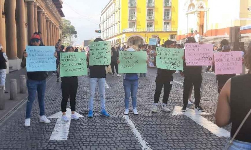 Jóvenes integrantes de Federación Nacional de Estudiantes Revolucionarios Rafael Ramírez (FNERRR), bloquean esta mañana de jueves la avenida Enríquez, de Xalapa, causando caos vial al primer cuadro de la ciudad.