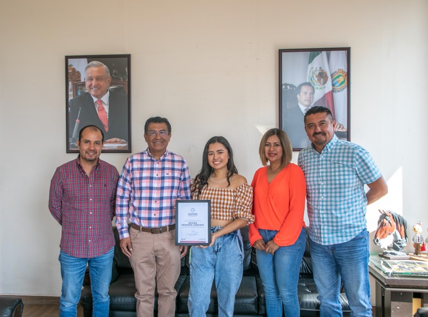 El alcalde Raymundo Andrade Rivera, junto al Regidor Quinto, Edson Tejada Corona, otorgaron un reconocimiento a Regina Herrera Libreros, joven coatepecana estudiante de la licenciatura de arquitectura en la Universidad Veracruzana, quien en días pasados, junto con su equipo, obtuvieron el Primer Lugar en el concurso organizado por la Procuraduría del Medio Ambiente, en el Proyecto Ampliación del Aquarium del Puerto de Veracruz, dirigido a jóvenes universitarios.