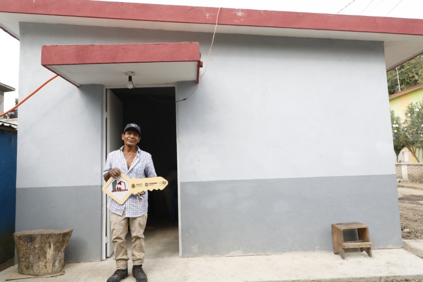 “Es la primera vez que recibo un apoyo, jamás había existido un presidente como López Obrador; él nos ayudó en el transcurso del huracán y, con este cuarto, mis hijos ya no enfermaron como antes, cuando sufríamos frío y teníamos que taparnos bien; estamos contentos y agradecidos”, expresó Azucena Nava Pérez, habitante de La Unión.