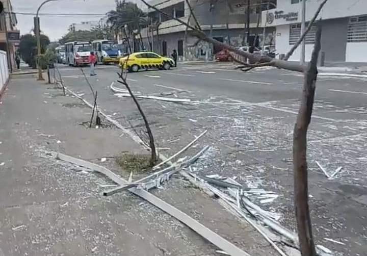 En el piso se pueden observar los pedazos de cristales que se desprendieron, incluso se siguen desprendiendo, por lo que las autoridades de tránsito realizan un cierre vial por el riesgo que representa.