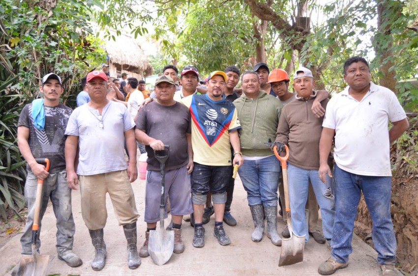 Con pala en mano, acarreando bultos y vertiendo cemento en un camino de 200 metros lineales de pavimento, solicitado por las familias de esta localidad, Juan Javier Gómez Cazarín expresó que donde la población se organice, ahí se estará apoyando para la realización de las obras que requieran.