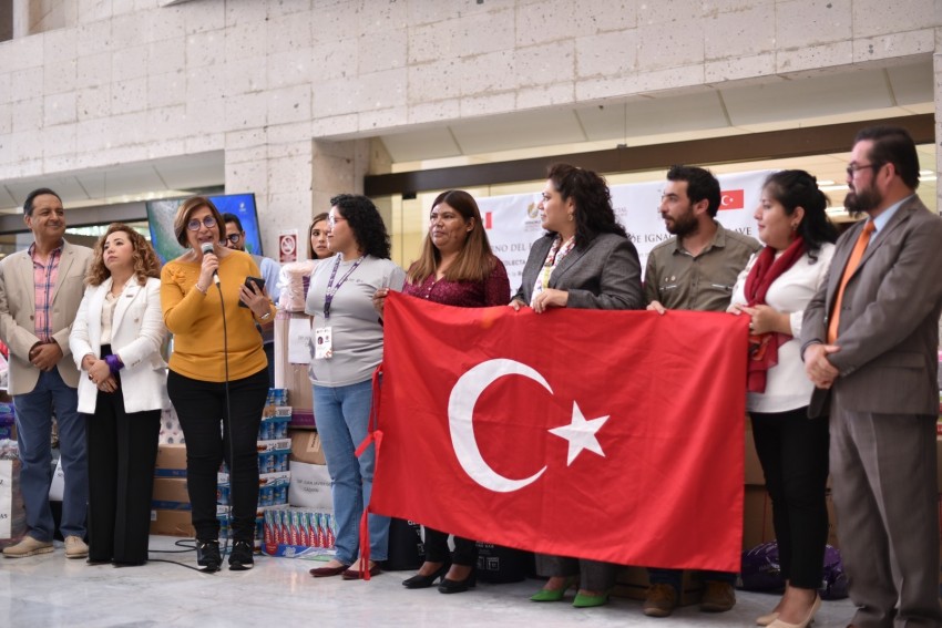 La presidenta de la Mesa Directiva de la LXVI Legislatura del estado, diputada Margarita Corro Mendoza, encabezó el acto en el cual se realizó un balance de la colecta de insumos y diversos apoyos que serán enviados a Turquía para los damnificados por el sismo registrado en días pasados y que ha cobrado la vida de ciudadanos de ese país.