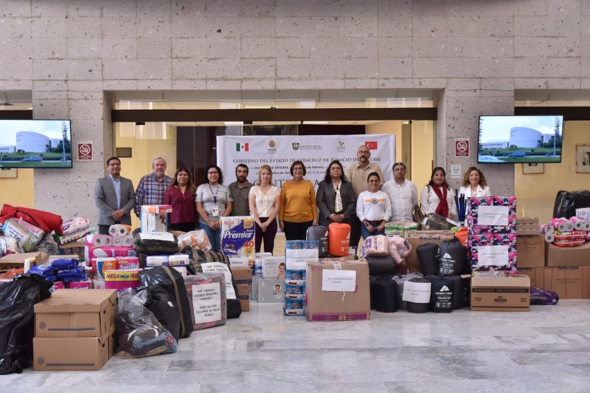 Con la asistencia de Gaye Solano Amador, Turan Özbek y Gürsel Kügük, miembros de la comunidad turca, radicados en la ciudad de Xalapa, la Diputada se congratuló por la cantidad de insumos recibidos al momento y recordó que el centro de acopio continuará abierto al público en general hasta este viernes 17 de febrero.