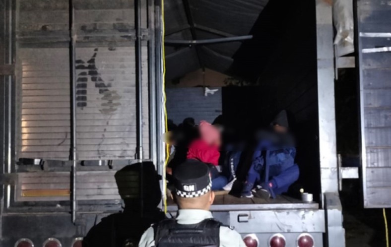 Al entrevistarse con el chofer, manifestó que no contaba con los papeles de identificación de la unidad. Los elementos de la GN realizaron una inspección al área de carga y localizaron alrededor de 40 personas migrantes en condiciones de hacinamiento.